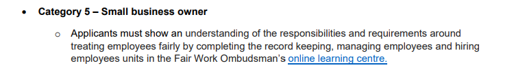 申請人必須表明自己懂得和遵守Fair Work在公平對待,管理和雇傭員工等方面的責任與要求。