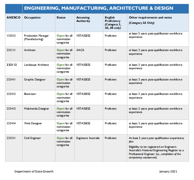 大家要注意清單上標(biāo)注的各職業(yè)開放的類別,英語(yǔ)要求,以及對(duì)3A類申請(qǐng)人的工作經(jīng)驗(yàn)等要求。