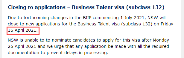 今日,新州州政府也宣布從4月16日(周五)起,將停止接受新的132商業天才簽證申請,并且將在4月26日(周一)之后,新州將不再提名申請人。
