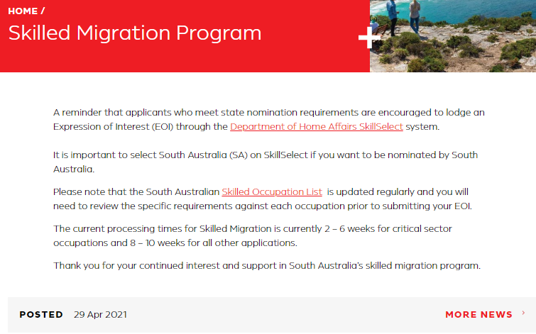 4月29日,南澳州官網更新了最新的職業列表,目前,對于關鍵職業技術移民的處理時間為2-6周,對于其他申請處理時間為8-10周。