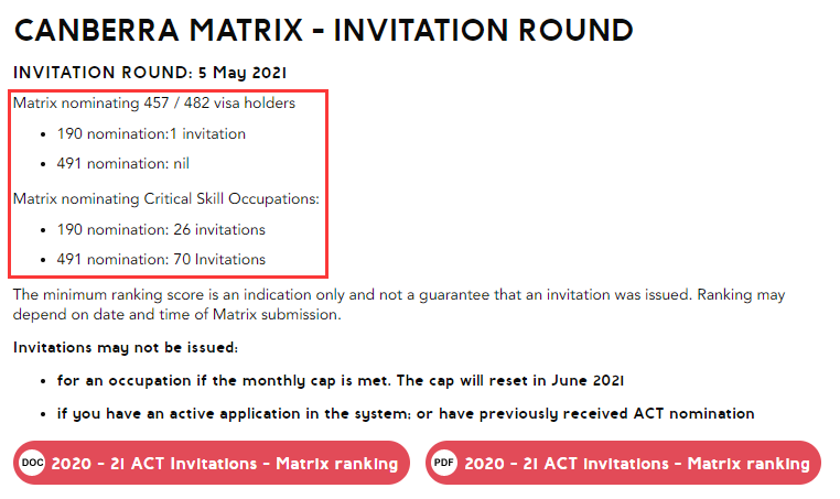 要注意的是,堪培拉Matrix的邀請(qǐng)?jiān)瓌t是優(yōu)先邀請(qǐng)Matrix分?jǐn)?shù)較高的申請(qǐng)人,而且每個(gè)職業(yè)大類每月的邀請(qǐng)名額有限制,如果當(dāng)月的邀請(qǐng)名額已發(fā)完,當(dāng)月將不再發(fā)出邀請(qǐng)。所以,只有在本組職業(yè)類別中分?jǐn)?shù)越高,排名越靠前,才更有機(jī)會(huì)獲邀。
