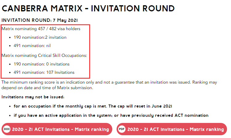 要注意的是,堪培拉Matrix的邀請原則是優先邀請Matrix分數較高的申請人,而且每個職業大類每月的邀請名額有限