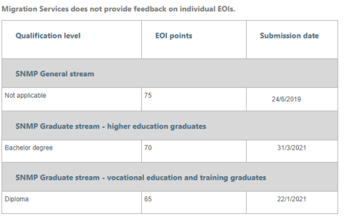 VET畢業(yè)生類別:最低邀請(qǐng)分?jǐn)?shù)為65分,推進(jìn)到2021年1月22日的申請(qǐng)。