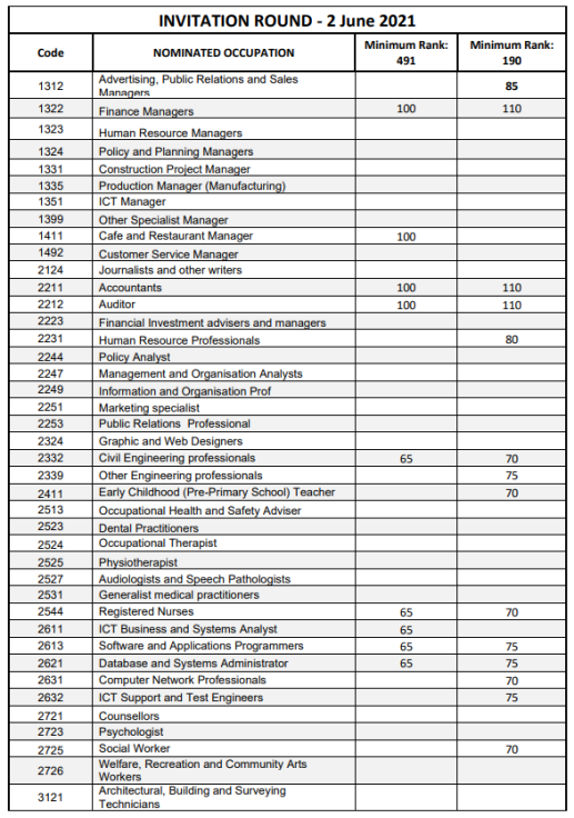 針對457/482簽證持有者發出0個邀請:190、491都未邀請;