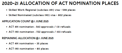 除了公布本輪的邀請情況,ACT官方還公布了本財年剩余的配額數量。