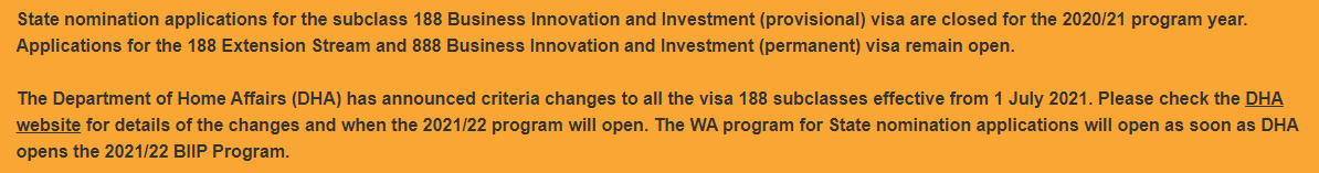 WA西澳提名計劃將在內政部啟動 2021-22 BIIP 計劃后開放。
