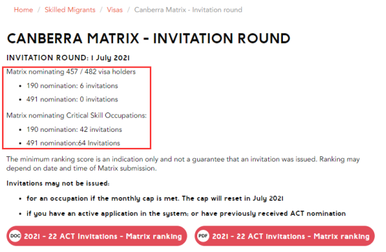 2021年7月1日,新財年第一天,堪培拉發出了2021-22財年的第一輪邀請。目前,ACT首領地2021-22財年190配額為600個,491配額為1400個。
