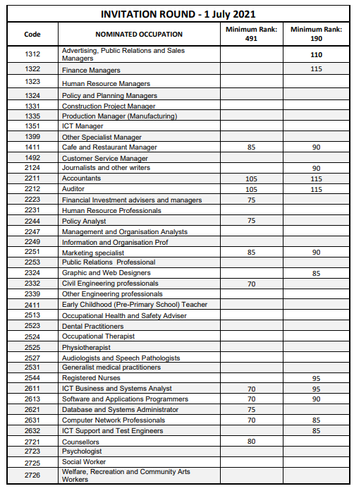 本輪2211會計和2212審計491最低邀請分數為105分,190最低115分獲邀;2332土木工程本輪僅發放491邀請,最低70分獲邀;2544注冊護士本輪僅發放190邀請,最低95分獲邀;IT類職業2611、2613、2631本輪491最低邀請分數均為70分,2631、2632本輪190最低邀請分數均為85分。除此之外,本輪咖啡店和餐廳經理、市場營銷專員、主廚、廚師等職業也發放了邀請。