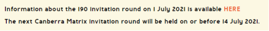 要注意的是,堪培拉Matrix的邀請原則是優先邀請Matrix分數較高的申請人,而且每個職業大類每月的邀請名額有限制,如果當月的邀請名額已發完,當月將不再發出邀請。所以,只有在本組職業類別中分數越高,排名越靠前,才更有機會獲邀。