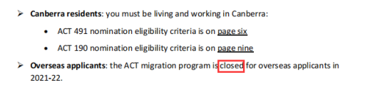 7月6日,ACT首領地在官網上公布了最新的guidelines,此次更新最重要的變化就是ACT推出了小生意主(SBO)類別,同時打分表也進行了一些修改!190或491州擔申請要求沒有大變化!