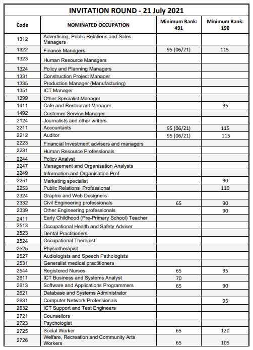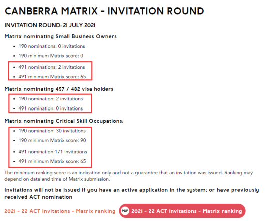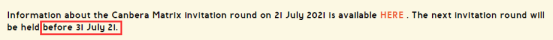 2021年7月21日,堪培拉發出了一輪新的邀請,本次還對新增的小生意類別的申請人進行了邀請,最低邀請分數為65分。