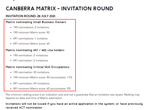 要注意的是,堪培拉Matrix的邀請原則是優(yōu)先邀請Matrix分數(shù)較高的申請人,而且每個職業(yè)大類每月的邀請名額有限制,如果當月的邀請名額已發(fā)完,當月將不再發(fā)出邀請。所以,只有在本組職業(yè)類別中分數(shù)越高,排名越靠前,才更有機會獲邀。