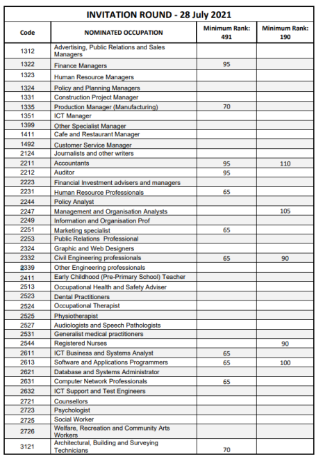 本輪2211會計和2212審計491最低分數(shù)均為95分,會計190最低分數(shù)下降5分為110分;2332土木工程491最低65分獲邀,190最低邀請分數(shù)為90分;2544注冊護士僅發(fā)放190邀請,最低90分獲邀;IT類職業(yè)2611、2613本輪491最低邀請分數(shù)均為65分。除此之外,本輪財務經理、主廚、廚師等職業(yè)也發(fā)放了邀請。本輪針對小生意主的申請人發(fā)出3個邀請,其中190最低邀請分數(shù)為90分,491最低65分獲邀!