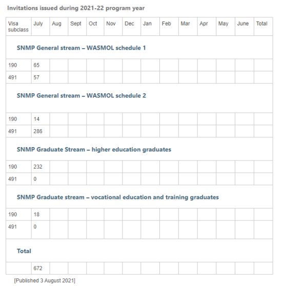 8月3日,西澳公布了7月SNMP邀請的結果,這是西澳新財年發放的首次邀請,接下來讓我們一起看看本輪邀請的情況!