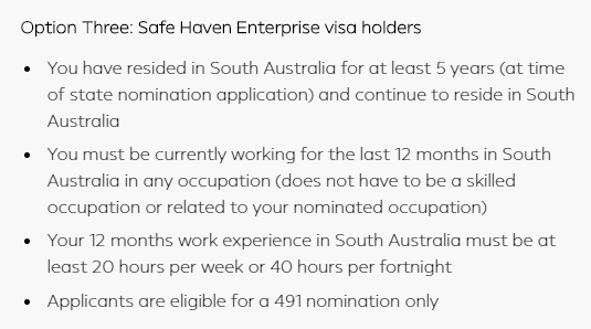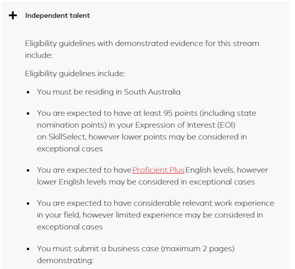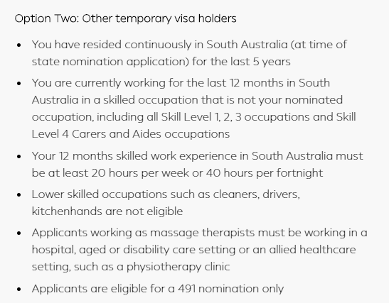 5、必須滿足南澳州擔保提名的基本要求以及提名職業的要求;