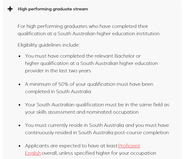 1、如果通過人才與創新者計劃-優秀畢業生類別申請,選定的南澳畢業生可免除工作經驗要求。南澳優秀畢業生(high performing graduate)必須提交ROI給Talent and Innovators program;
