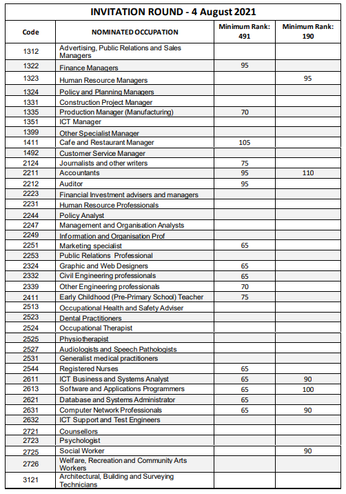 2021年8月4日,堪培拉發出了一輪新的邀請,本次對新增的小生意類別的申請人僅發放了491邀請。