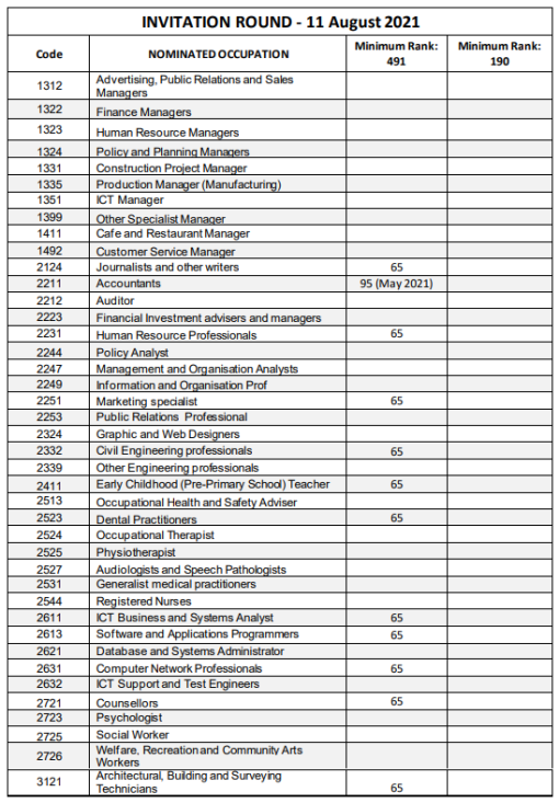 本輪2211會計本輪僅發放491邀請,最低邀請分數為95分;2332土木工程本輪491最低65分獲邀;IT類職業2611、2613、2631本輪491最低邀請分數均為65分。除此之外,本輪市場營銷專員、人力資源經理、主廚等職業也發放了邀請,且本輪其他職業最低邀請分數均為65分。
