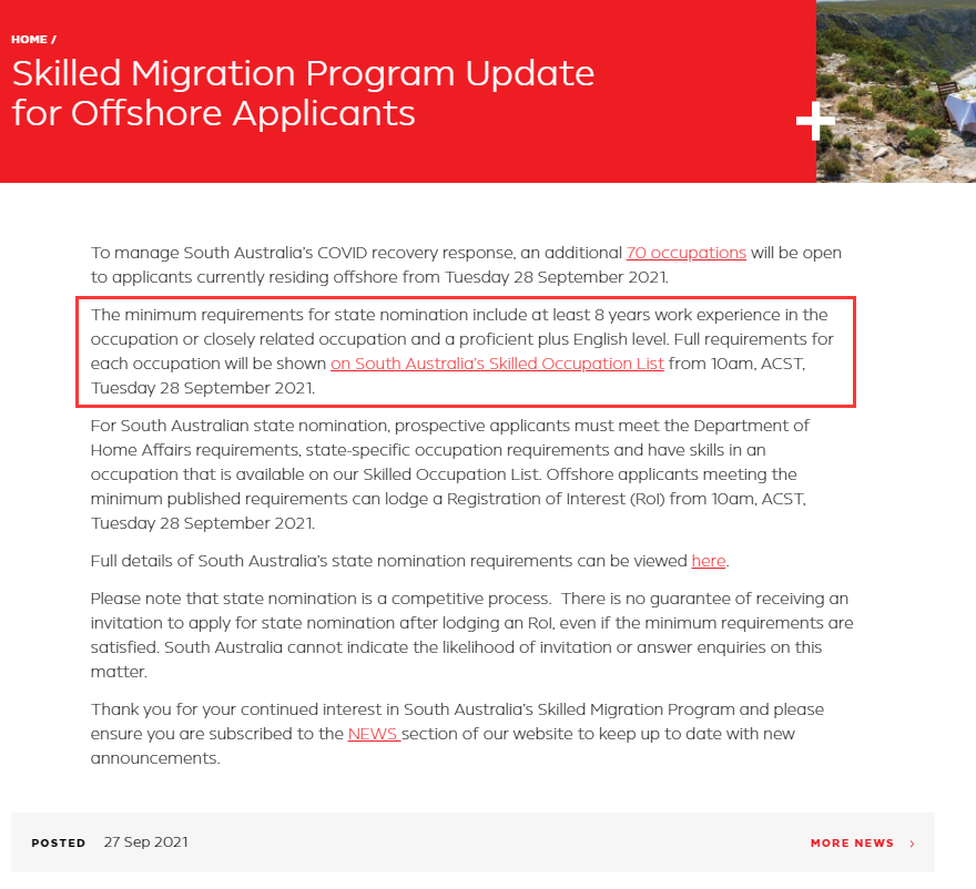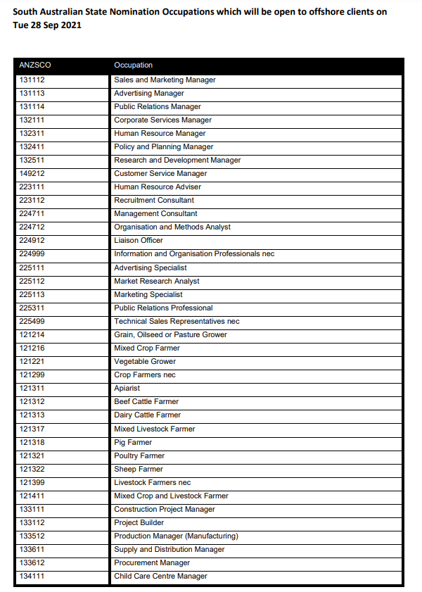 為了幫助南澳的COVID疫情恢復,南澳州政府將向目前居住在海外的申請人開放額外的70個職業,澳洲中部時間2021年9月28日上午10點開放申請!