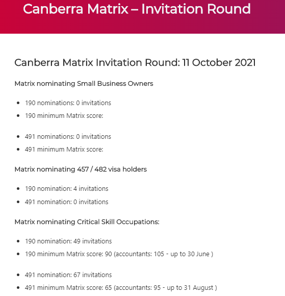 最新一輪!堪培拉發(fā)出了十月第二輪Matrix邀請,190邀請分?jǐn)?shù)低至90分。