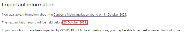 ACT州政府仍然保持了每周一邀的頻率,下次邀請預(yù)計在10月20日之前。