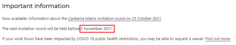 ACT州政府仍然保持了每周一邀的頻率,下次邀請(qǐng)預(yù)計(jì)在11月3日之前。