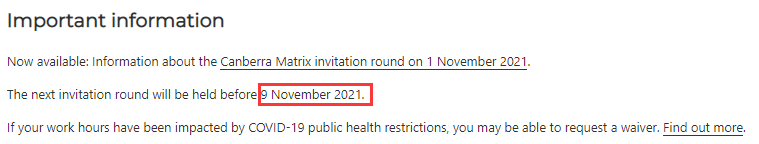 ACT州政府仍然保持了每周一邀的頻率,下次邀請預計在11月9日之前。