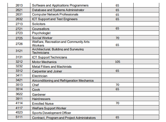 本輪僅發出9個190邀請,都是457/482簽證持有者。關鍵職業類別的73個邀請全部發放給491,沒有190。491邀請最低仍是65分,但是3212汽車技工高至105分,比會計還高,三大財務類職業(財務經理、會計、審計)僅需95分,其次是客服經理需80分獲邀,大部分獲邀職業的最低分數都是65分,包括有咖啡館和餐館經理、平面設計師、土木/電氣/電子工程、注冊護士、多個IT職業、廚師等。