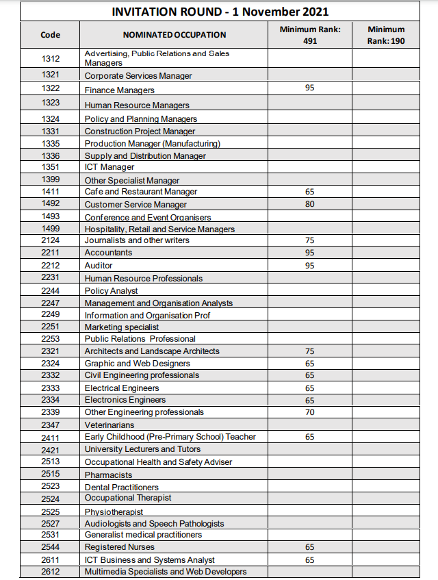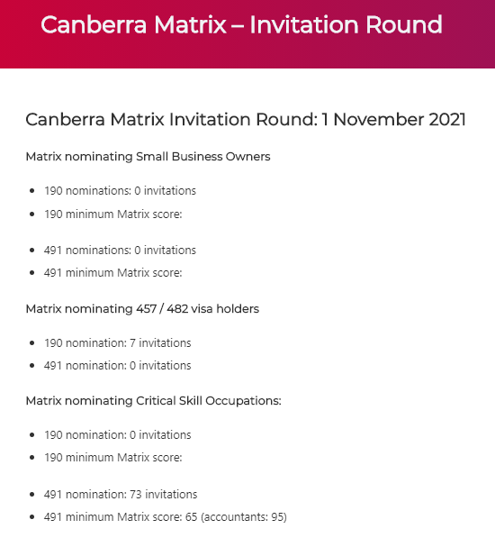 近日,堪培拉發出了十一月第一輪Matrix邀請,關鍵職業類別190零邀請。