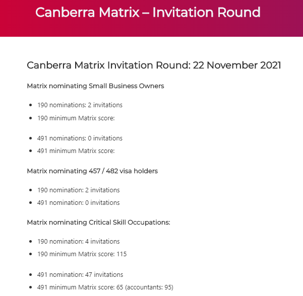 日前,澳大利亞總理已經宣布從12月1日起,完全接種TGA認可疫苗、持有符合資格的簽證的人可以無需額外申請豁免入境,學生簽證、技術簽證、打工度假簽證都包含在內,相當于大開國門。所以12月1日后要回到堪培拉是非常容易的,ACT政府此次宣布2022年3月1日之前回到堪培拉居住就可以加Matrix分相當于送分,對大家申請ACT州擔保非常有利!