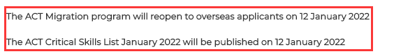 目前ACT官網(wǎng)州擔(dān)申請guideline只將境內(nèi)堪培拉居民類別的更新至了2022年1月版本,暫未看見海外申請類別的guideline,小編估計海外申請類別很可能沿用關(guān)閉之前的政策。另外,Critical Skills List將于1月12號更新,小編估計會跟現(xiàn)在使用的2021年9月版有些調(diào)整,大家可以參考一下。