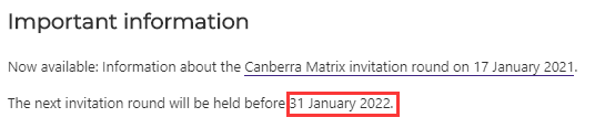 ACT州政府仍然保持了每周一邀的頻率,下次邀請(qǐng)預(yù)計(jì)在2021年1月31日之前。