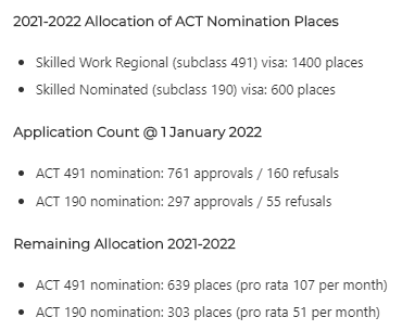 截至2022年1月1日,本財(cái)年堪培拉491州擔(dān)提名已通過761個(gè),拒絕160個(gè),190州擔(dān)提名已通過297個(gè),拒絕55個(gè)。目前剩余名額還非常充足,190剩余303個(gè)(預(yù)計(jì)平均每月51個(gè)),491剩余639個(gè)(預(yù)計(jì)平均每月107個(gè))。