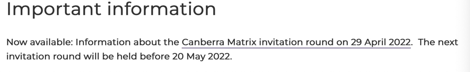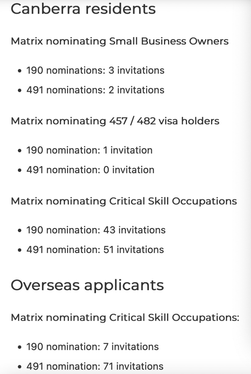 ACT州政府于上周4月29日發放了4月的最后一輪邀請,此次共計有178人獲得Matrix邀請。