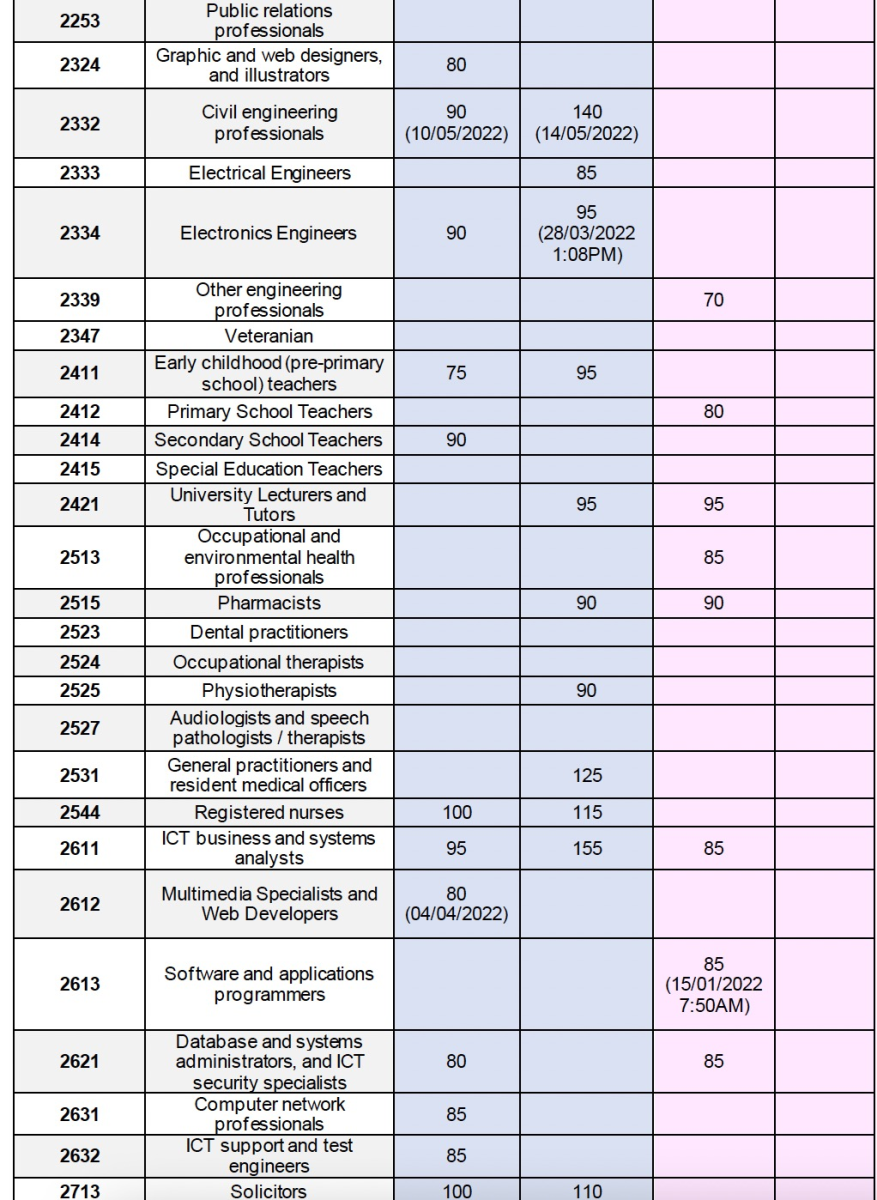 190簽證方面,獲邀的分數區間從85分到155分,跨度相較上輪而言是比較大的。最低85分獲邀的職業是2333電氣工程師,門檻最高的155分是2611ICT商業系統分析師,其次是2332土木工程師。熱門職業2211會計本輪沒有邀請。
