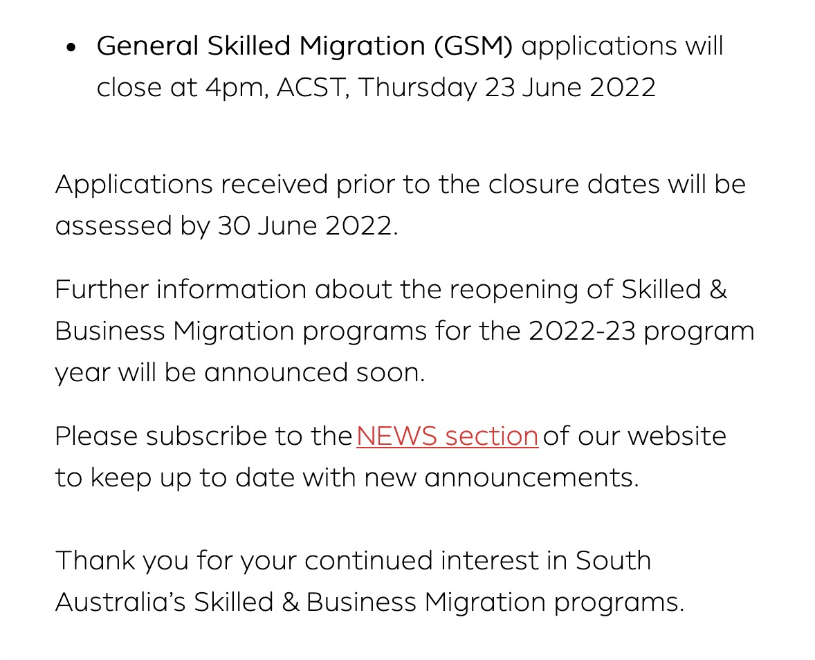 6月6日,南澳官網發布重要消息:南澳技術移民和商業移民項目即將停止。2021-2022財年的州擔當申請將馬上關閉,申請時間所剩不多。