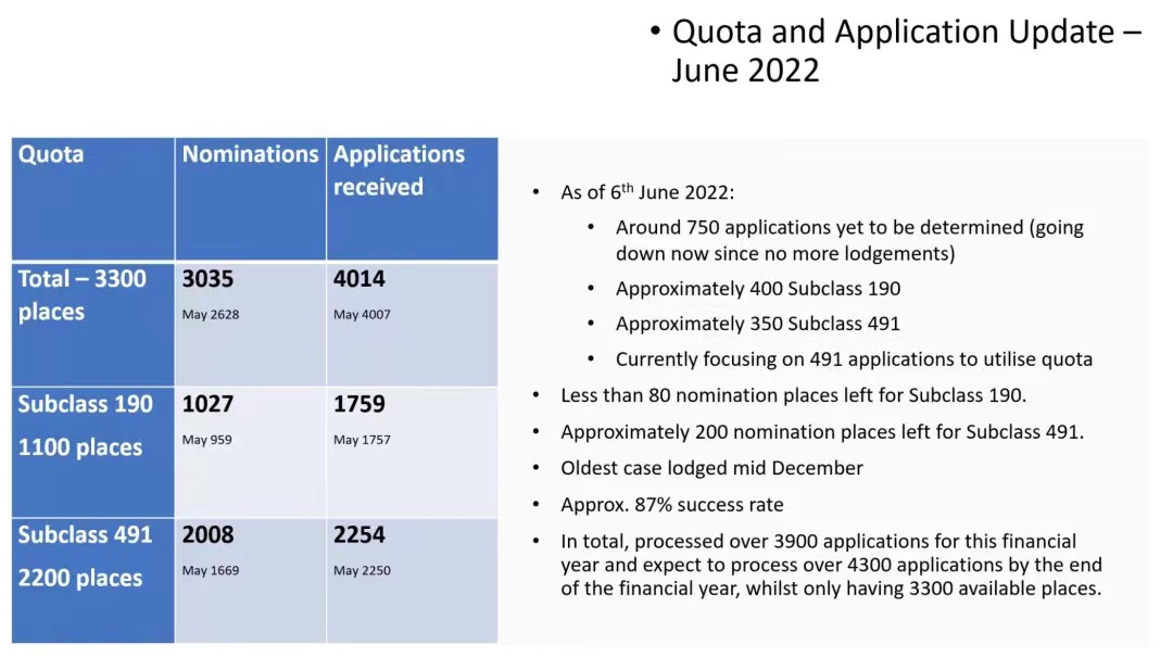 截止2022年6月6日,仍有約750個申請待處理,其中190大約有400個,491大約有350個。塔州州政府目前正在重點審理491簽證的申請。