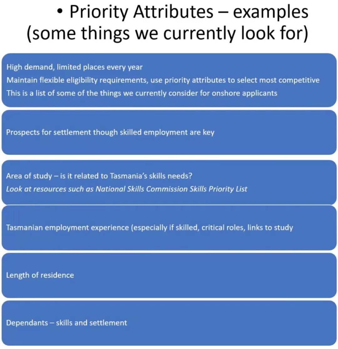 3. 明確要側(cè)重考量的申請條件。塔州州擔保會更加側(cè)重于考量申請人的技能水平。包括:申請人是否具有熟練技能(skilled employment),是否是通過培訓獲得的技能,是否有長期居住的意向,海外申請人是否具有能夠滿足雇主需求的技能水平和工作經(jīng)歷。