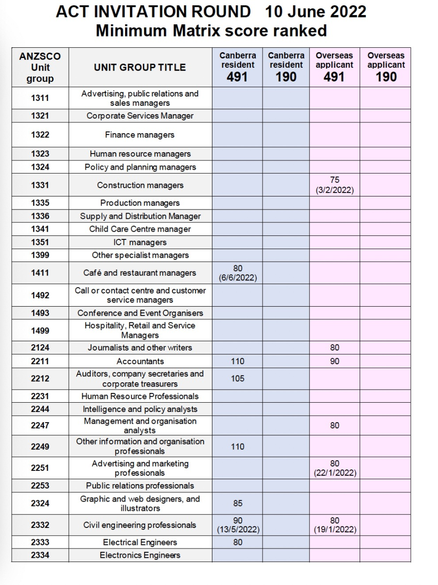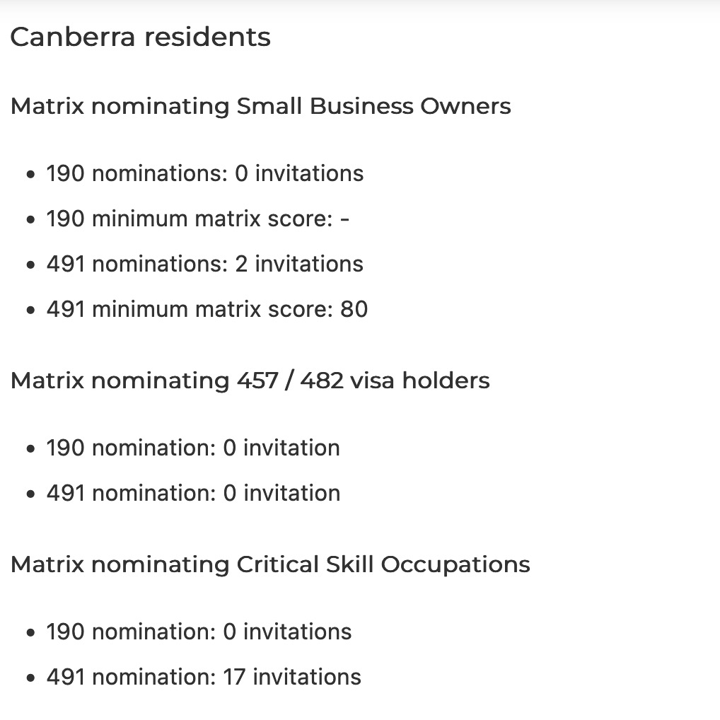 ACT州政府于上周五6月10日發放了最新一輪邀請,此次共計有33人獲得Matrix邀請,下一輪預計邀請時間是7月7日。