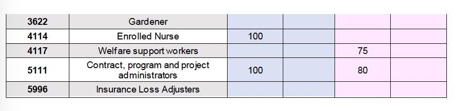 491簽證方面,獲邀的分數區間從75分到110分。分數最高的是2211會計(110分)、2249其他信息和組織專業人員(110分),其次是2212審計員、公司秘書和財務主管(105分),4114注冊護士(100分),5111合同、計劃和項目管理員(100分)。獲邀分數最低的75分來自4117福利支持人員、1331施工經理、2411早教老師。
