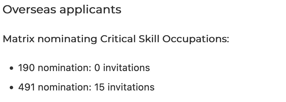 ACT州政府于上周四6月16日發(fā)放了最新一輪邀請(qǐng),邀請(qǐng)結(jié)果如下所示。