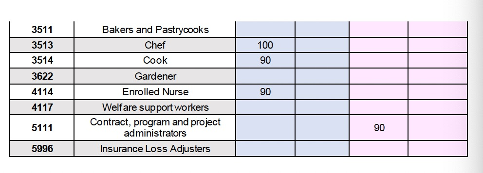 491簽證方面,獲邀的分?jǐn)?shù)區(qū)間從65分到115分。65分的職業(yè)是2726福利、娛樂和社區(qū)藝術(shù)工作者,以及2515藥劑師。最高分115分依舊來自2211會(huì)計(jì),其次來自1322財(cái)務(wù)經(jīng)理(105分),2212審計(jì)、公司秘書和公司財(cái)務(wù)主管(100分),3513廚師(100分)。