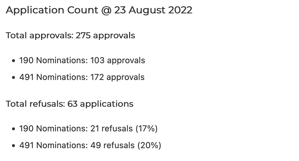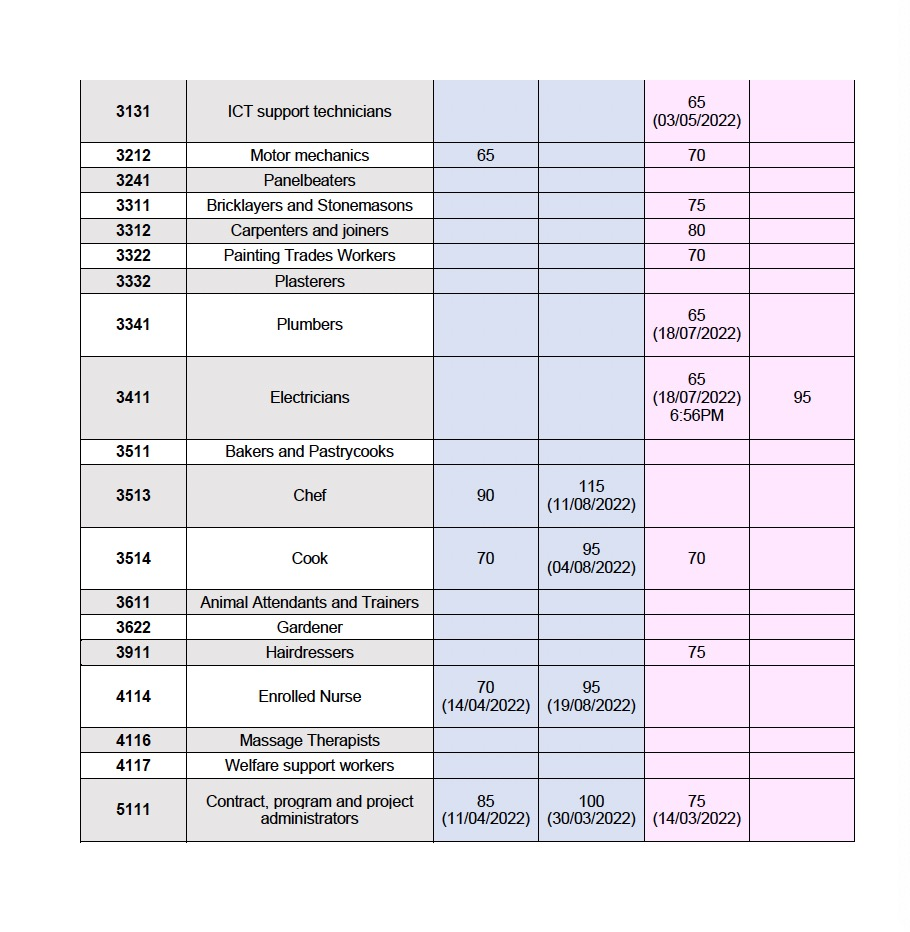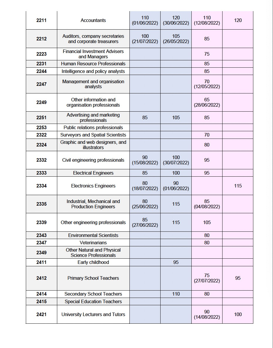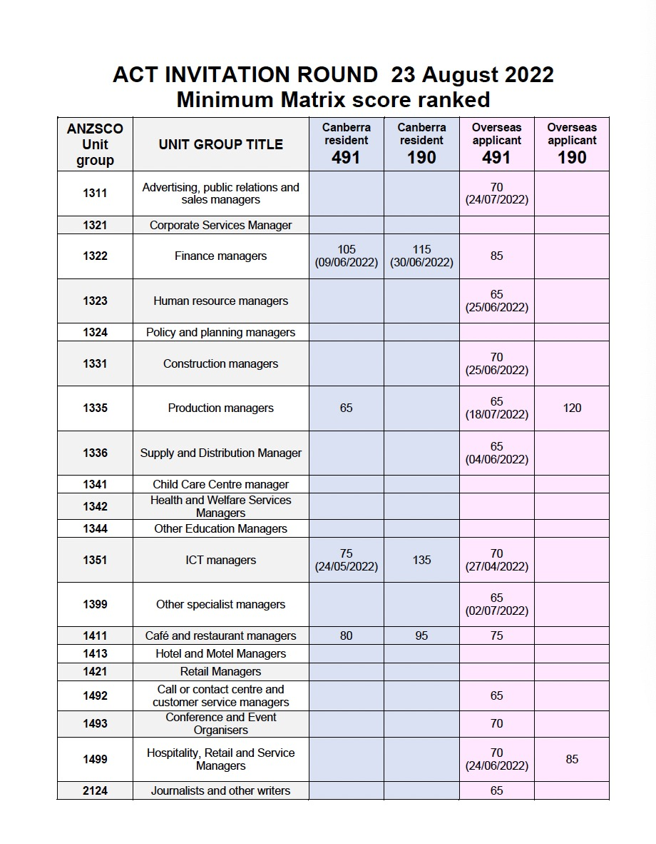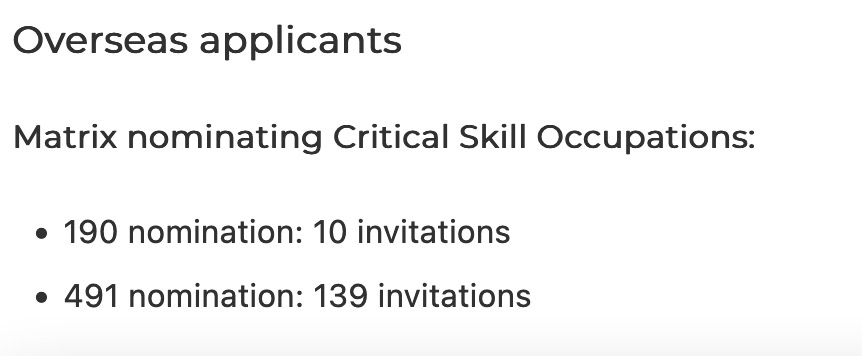 491方面,獲邀的分數區間從65分到110分。最低獲邀分65分的職業包括1335生產經理,1492呼叫或聯絡中心客戶服務經理,2124記者和其他作者,3212汽車機械工等。最高獲邀分110分來自2211會計,境內與境外申請人分數均為110分。