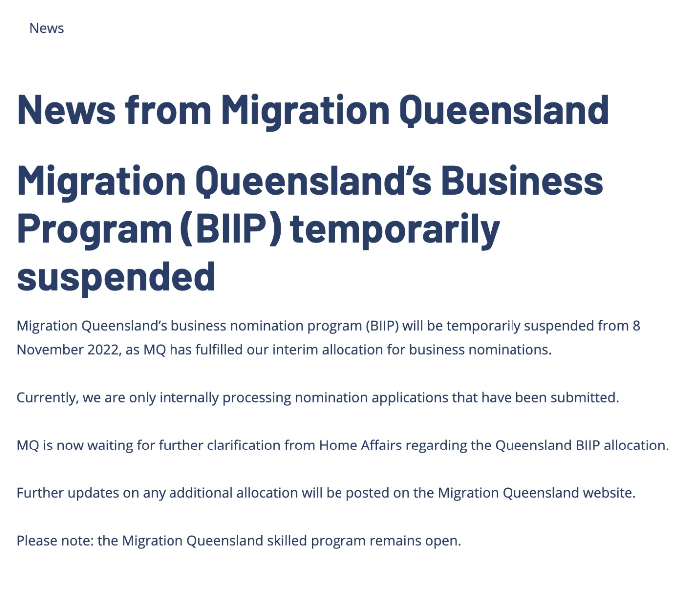 2. 昆州投資移民計劃(BIIP)暫時用盡