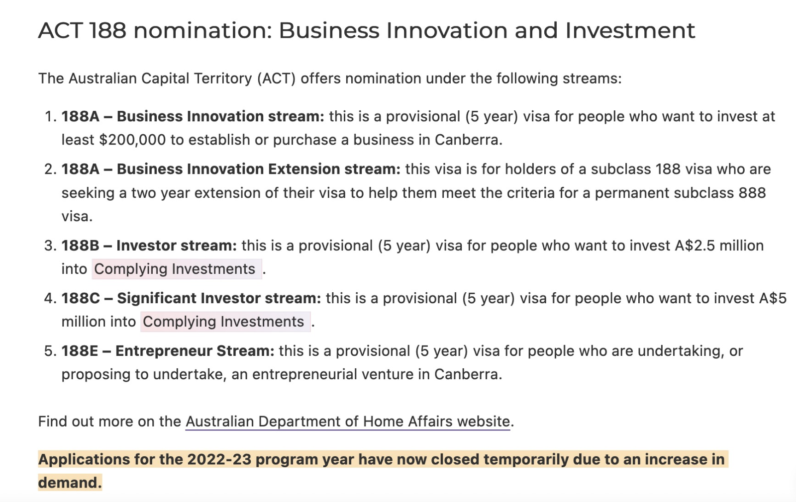 ACT官網周末更新:本財年的188申請現已暫時關閉。