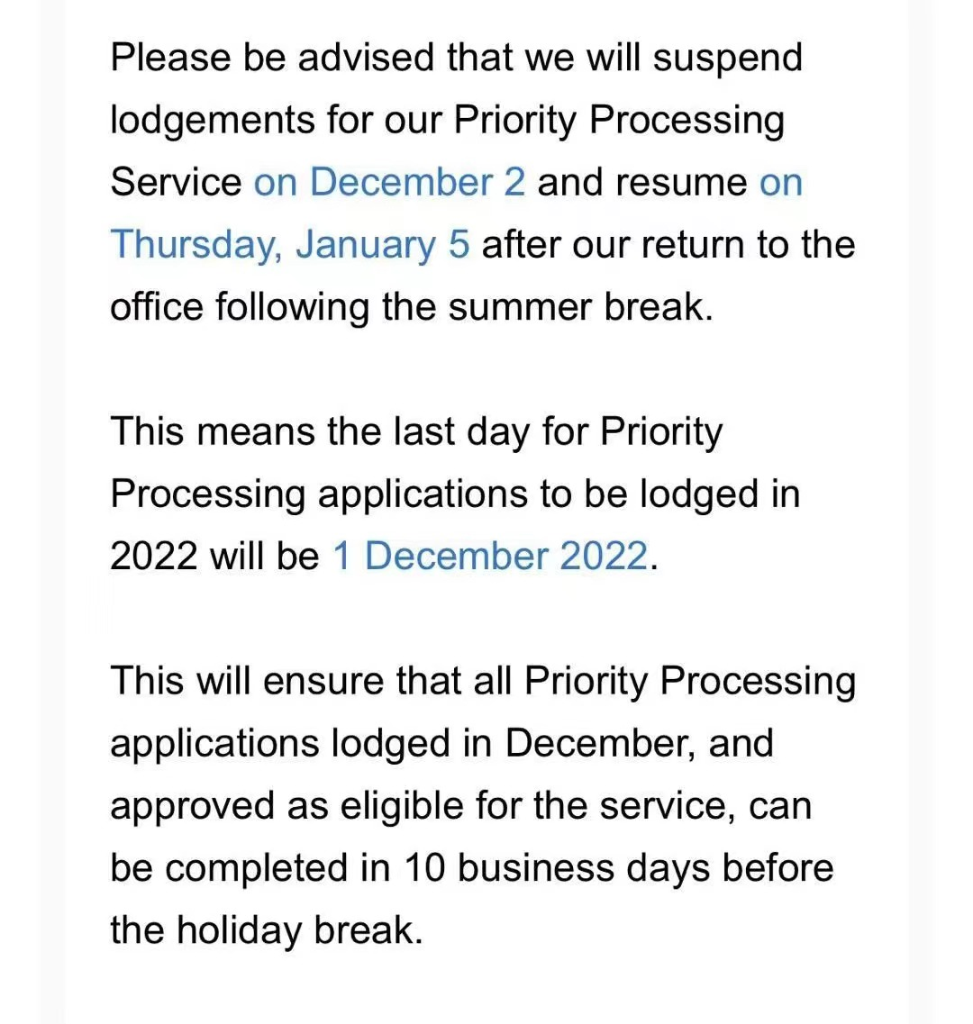 這意味著2022年能提交優先處理申請的時間為2022年12月1日。有需要的申請人須盡快提交申請。