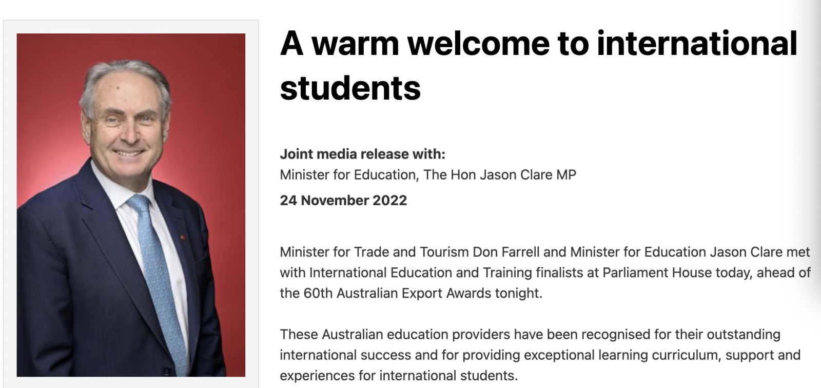 近日,澳洲貿(mào)易和旅游部部長Don Farrell和教育部部長Jason Clare表示,阿爾巴尼亞政府熱烈歡迎所有在澳大利亞學(xué)習(xí)的國際學(xué)生。