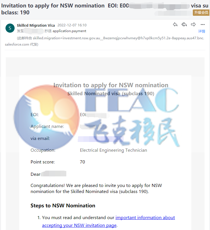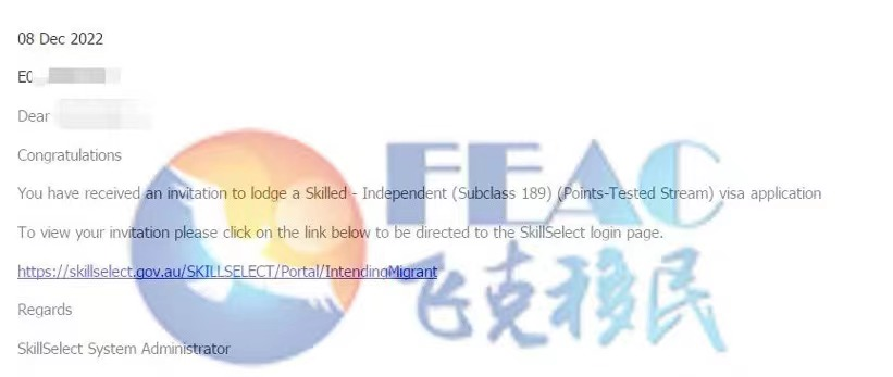 客戶獲邀分數70分, 2022.10.8遞交EOI 2022.12.8獲邀。