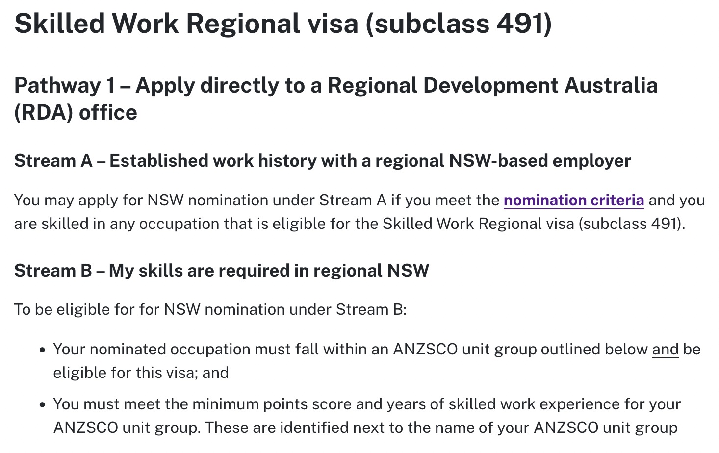 (要想獲得Stream B的提名資格,申請人的提名職業必須屬于以下ANZSCO類別,并符合該簽證條件;且符合ANZSCO類別旁邊列出的最低分數和工作經驗要求)