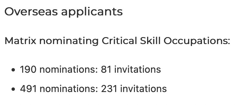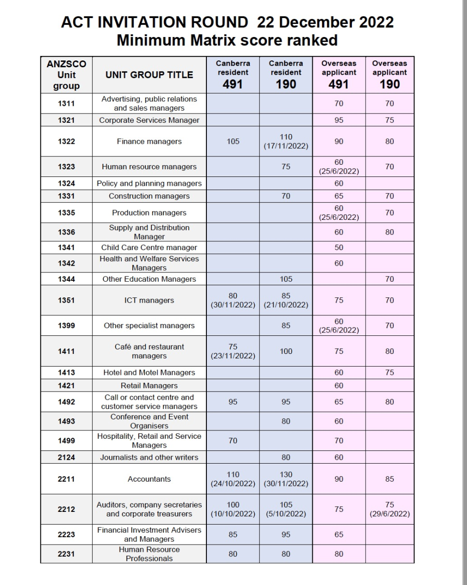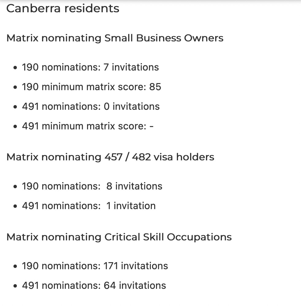 值得一提的是,根據上周五收到的ACT州政府內部通知來看,接下來ACT的190和491Matrix分數都將有所下降,190可能降至70分以下,491可能降至60分以下!感興趣的客戶可以私信我們的顧問進行評估,抓住機會,趁早上岸!